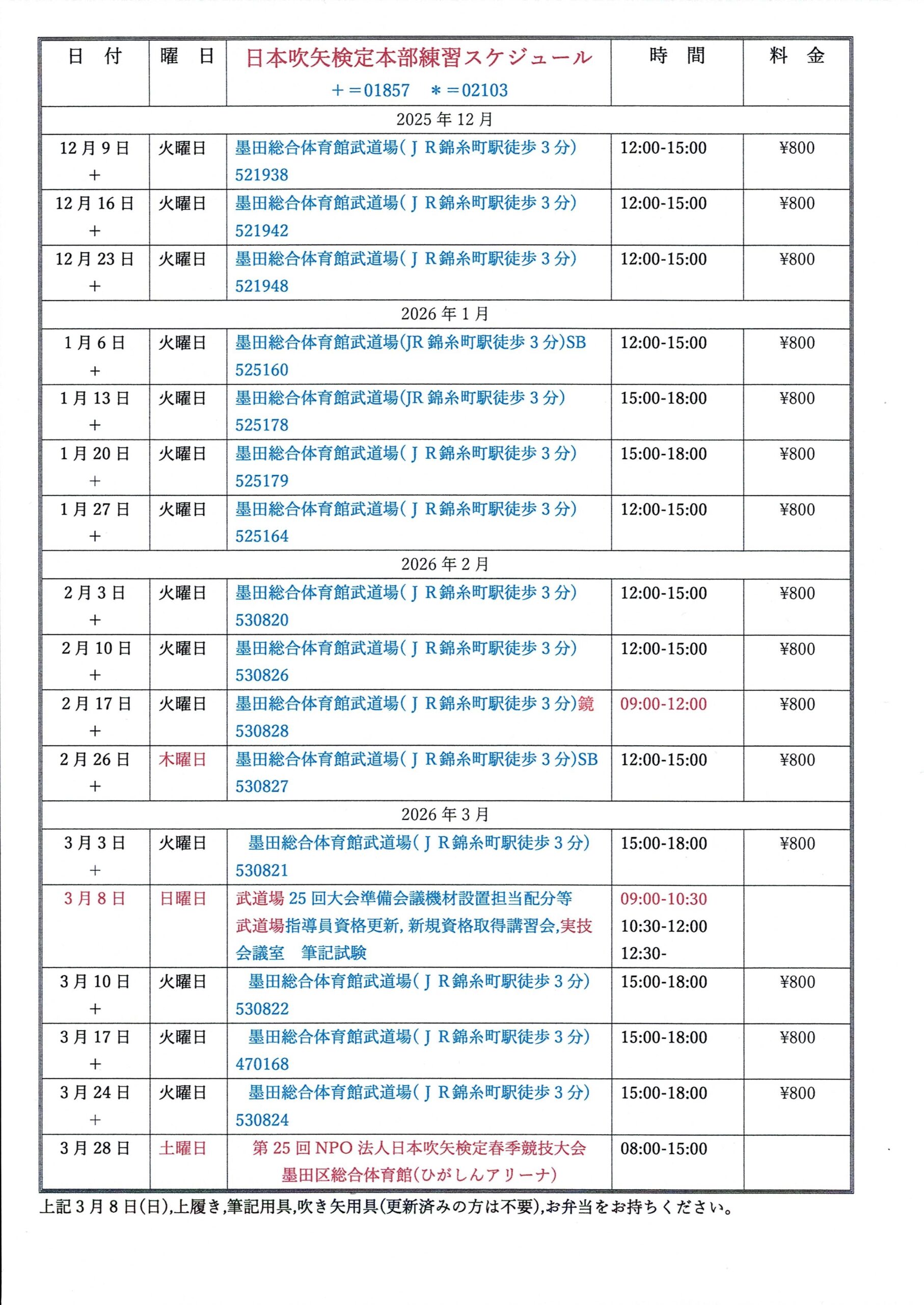 | NPO法人日本吹矢検定 船橋北支部練習日 |